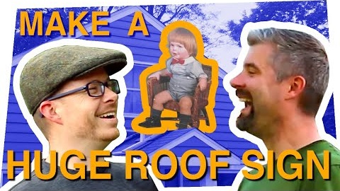 Surprised by a HUGE roof sign of his childhood photo!